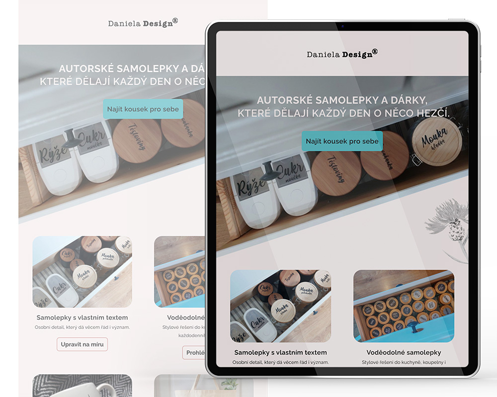 DanielaDesign.cz je autorský e-shop postavený na jemném vizuálním stylu, osobním obsahu a důrazu na detail.
