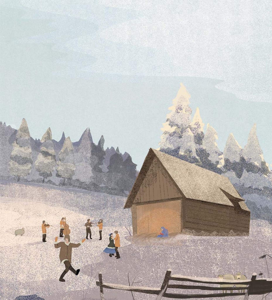 Ilustrace čerpají inspiraci z moravské krajiny, zimní atmosféry a tradičních českých Vánoc. Každá koleda má svou celoplošnou ilustraci, která vizuálně rozvíjí náladu skladby a podporuje její příběh.